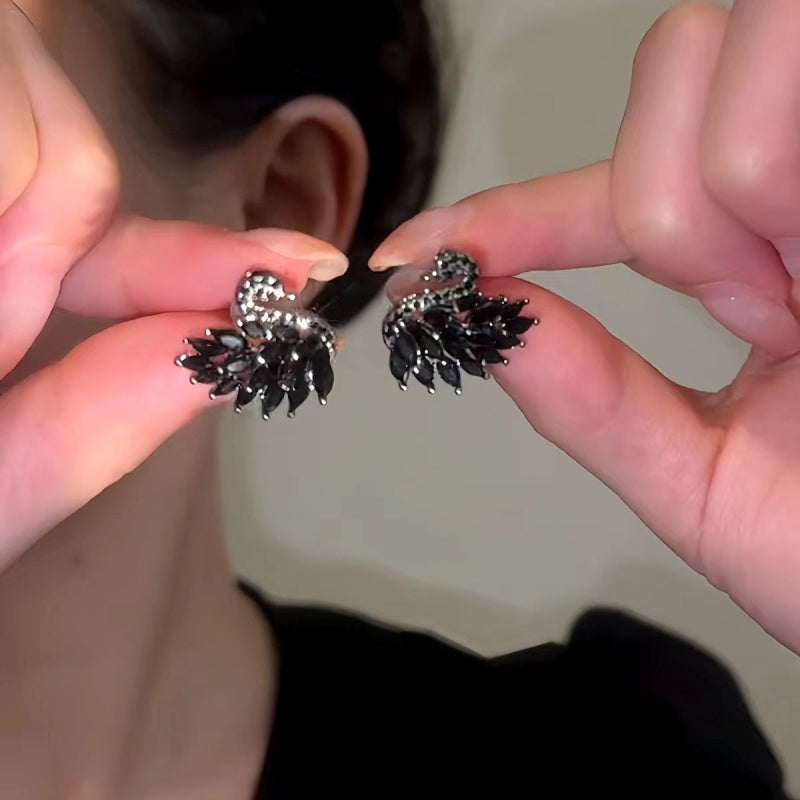 14K Gold-Plated 2024 New Explosive Style Black Swan Stud Earrings
