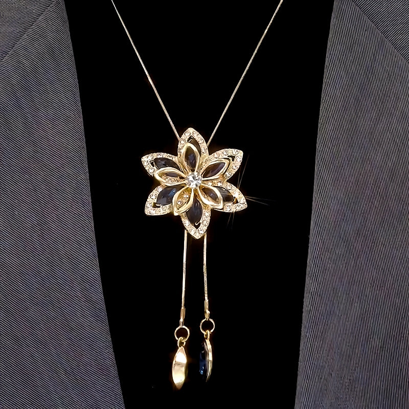 14K Gold-Plated Adjustable Flower Tassel Sweater Chain Necklace
