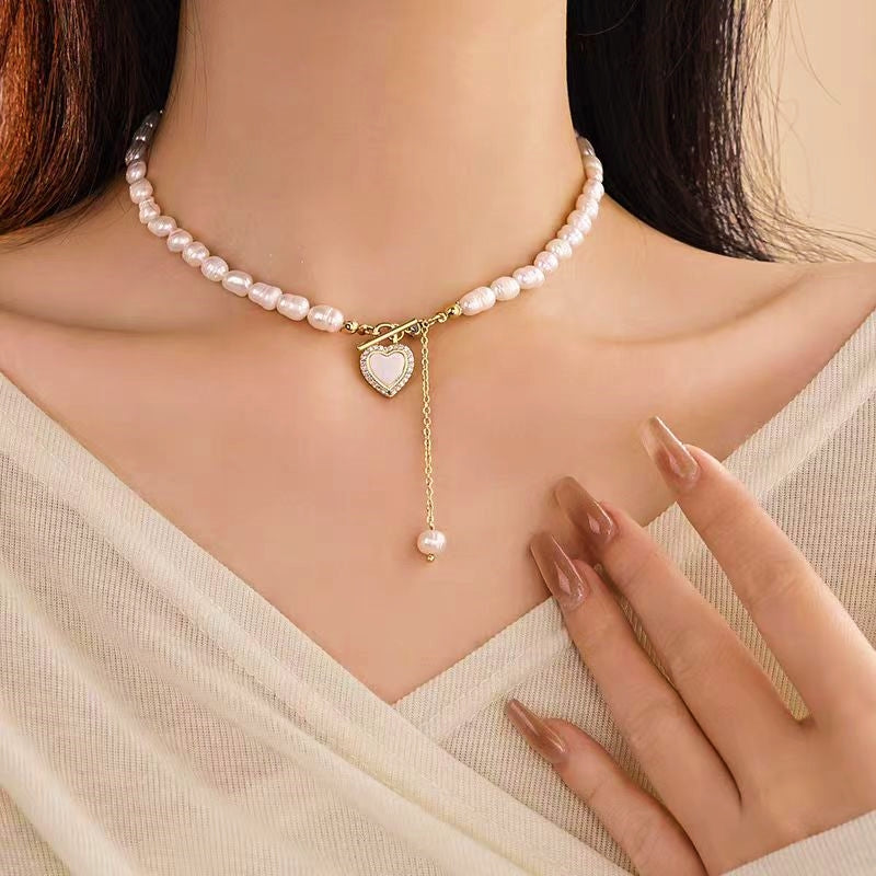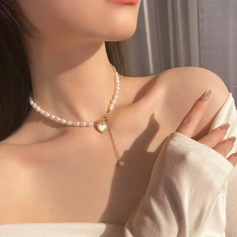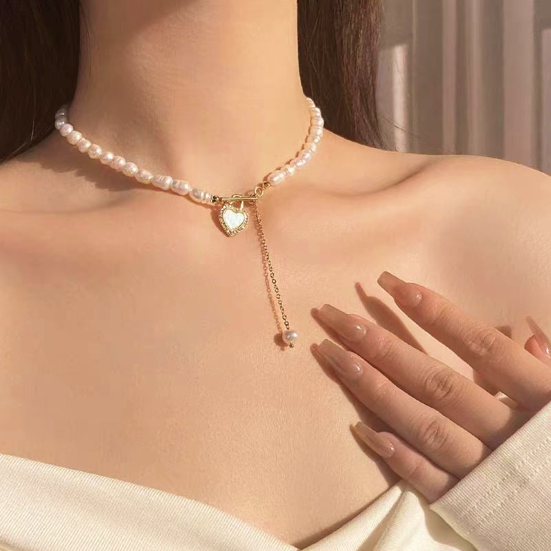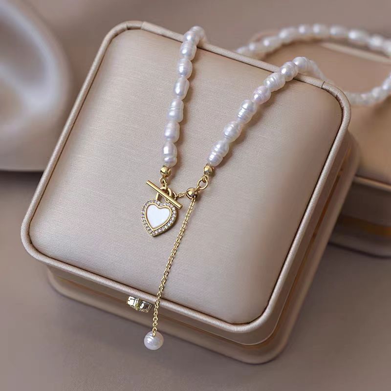 14K Gold-Plated Adjustable Heart And Pearl Necklaces