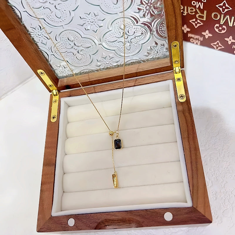 14K Gold-Plated Adjustable Square Crystal Necklaces