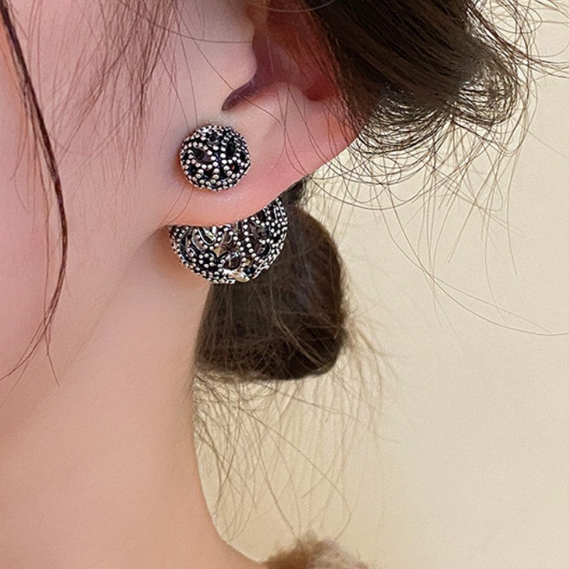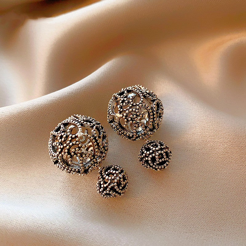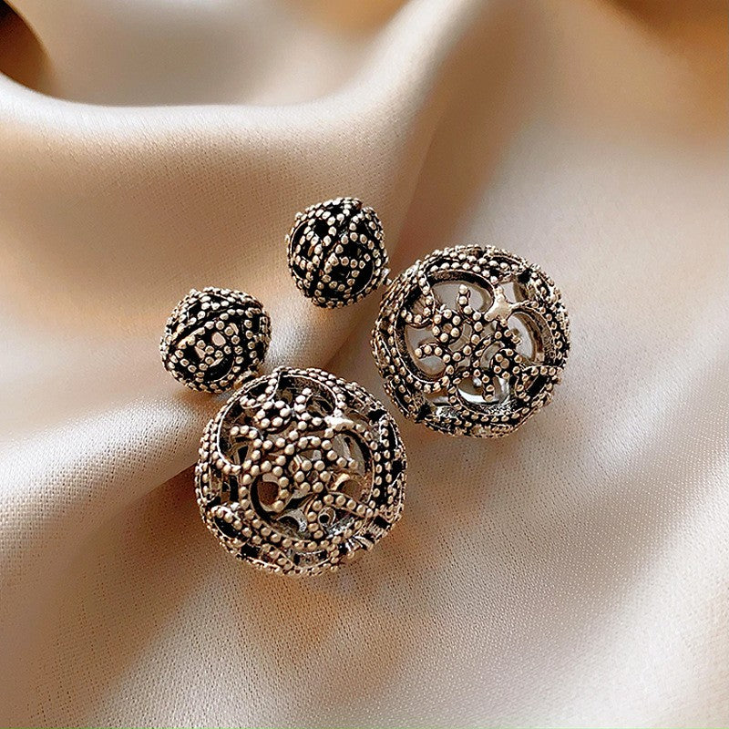14K Gold-Plated Antique Silver Retro Ball Earrings