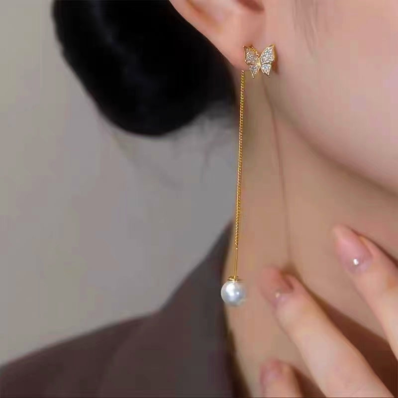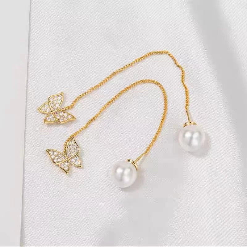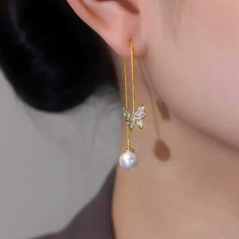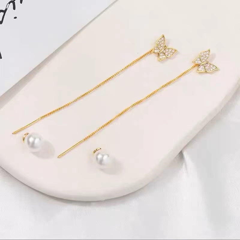 14K Gold-plated Artificial Pearl Butterfly Threader Earrings