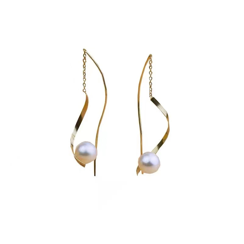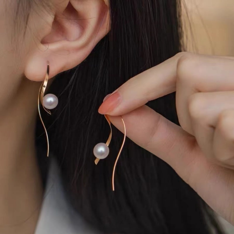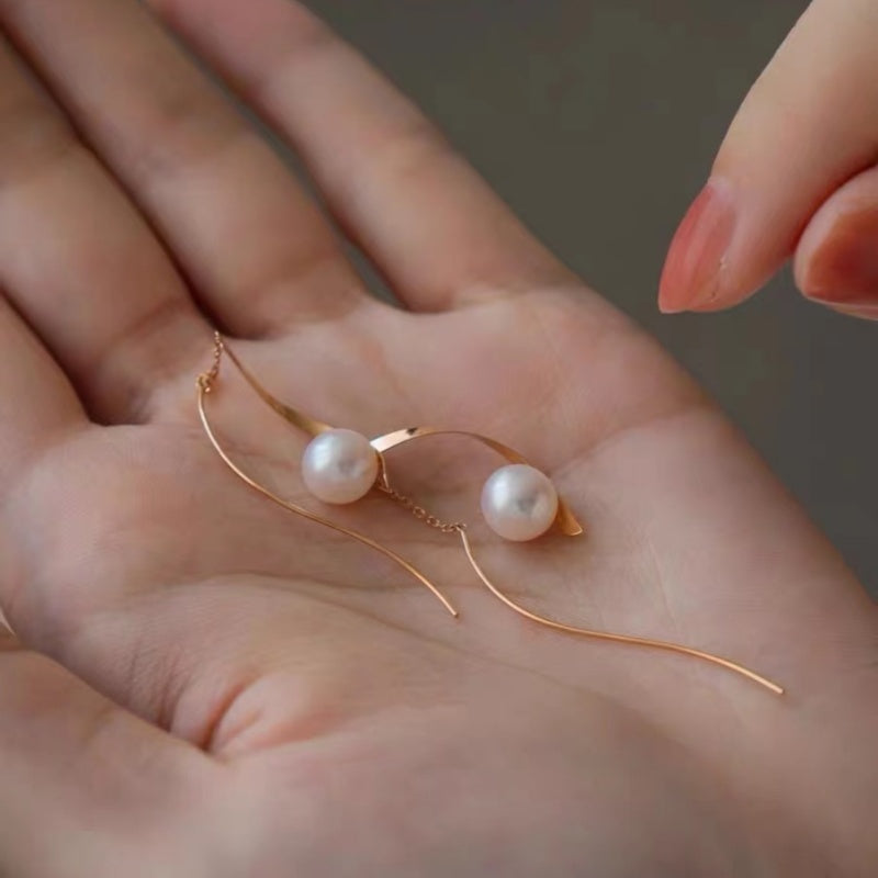 14K Gold-Plated Artificial Pearl Threader Earrings