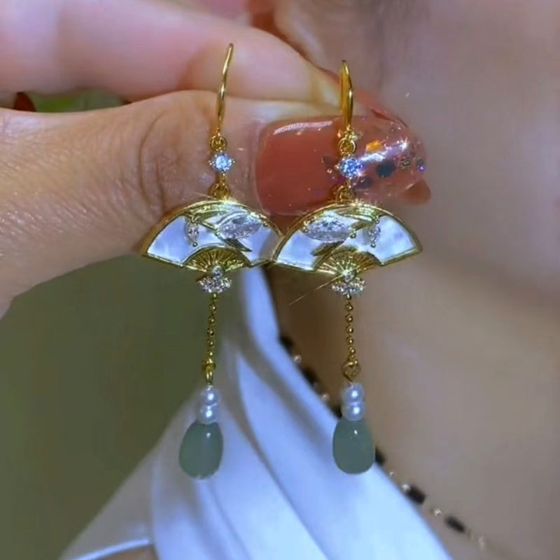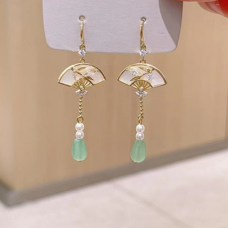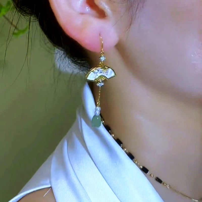 14k Gold-Plated Asian Style Folding Fan Ear Hook Earrings