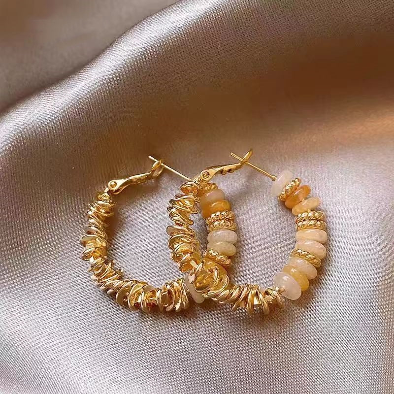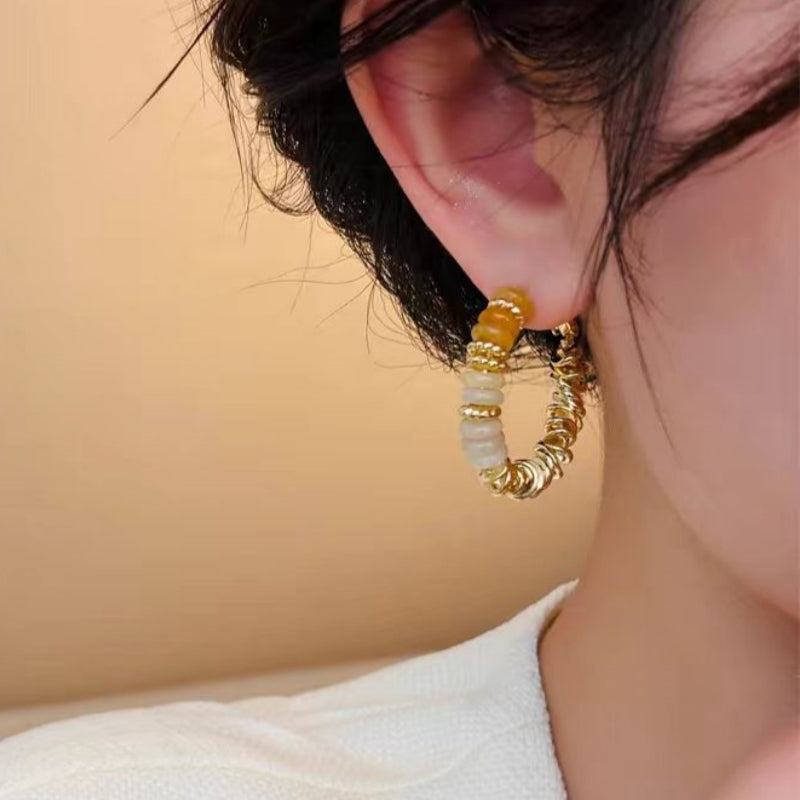 14k Gold-Plated Beaded Gold Hoop Earrings