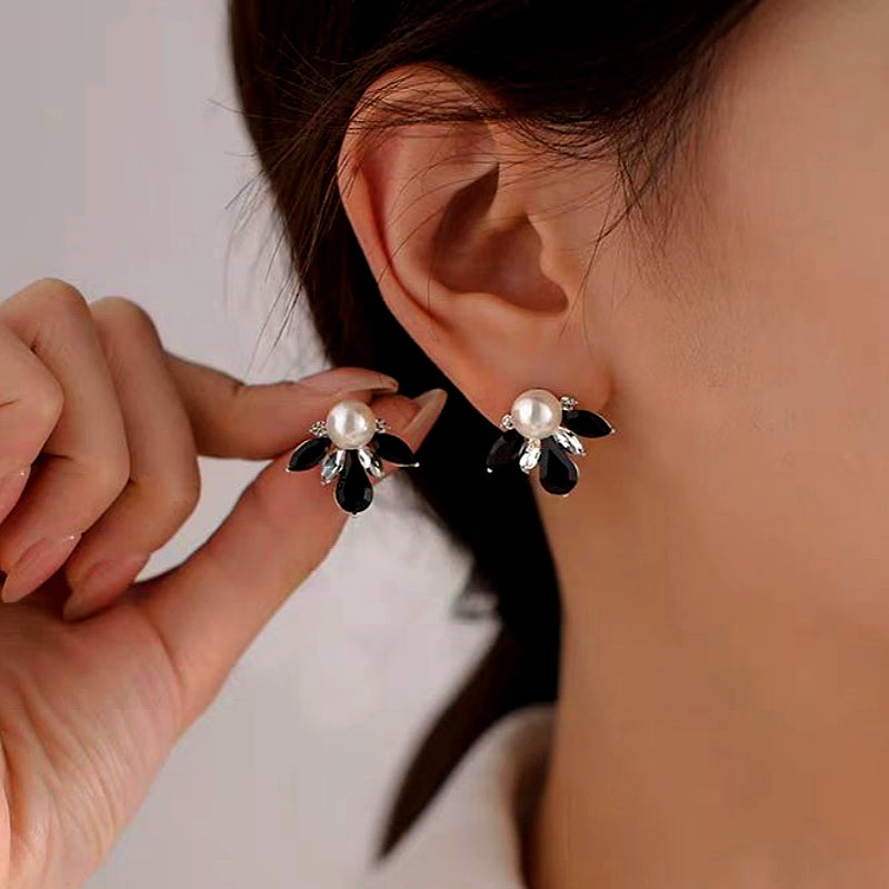 14K Gold-Plated Black Petal Pearl Stud Earrings
