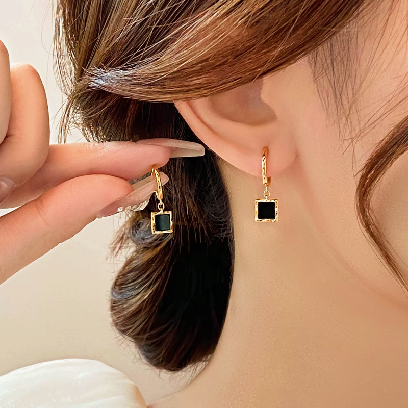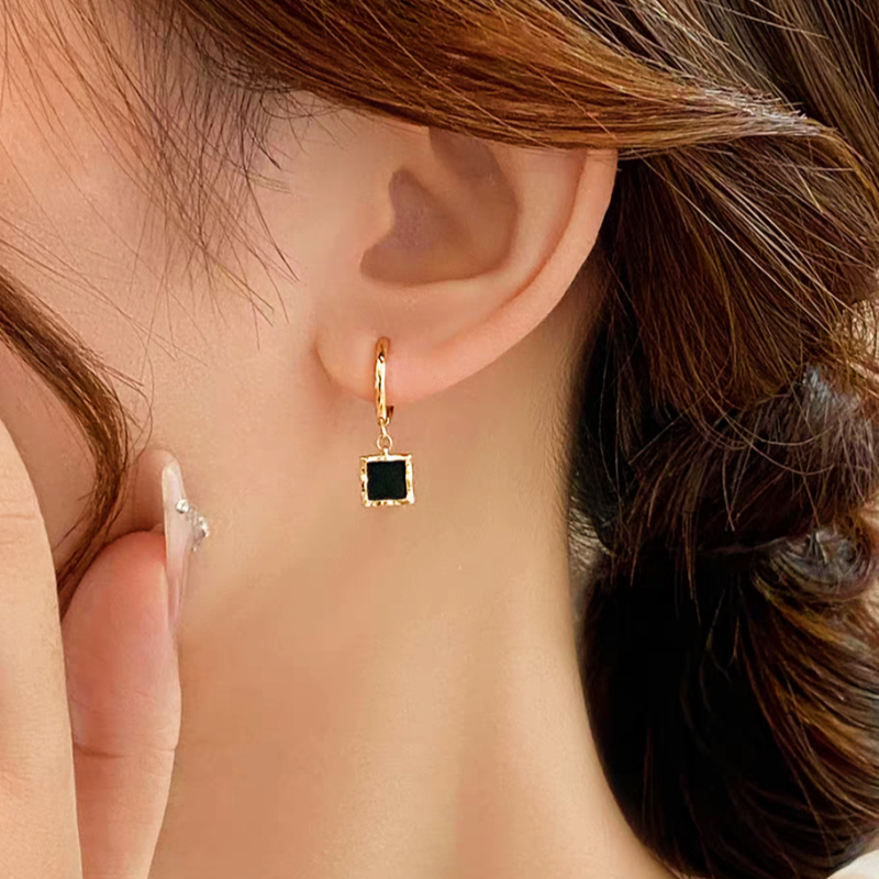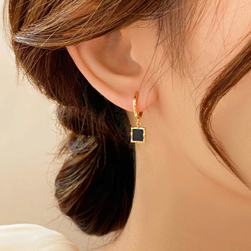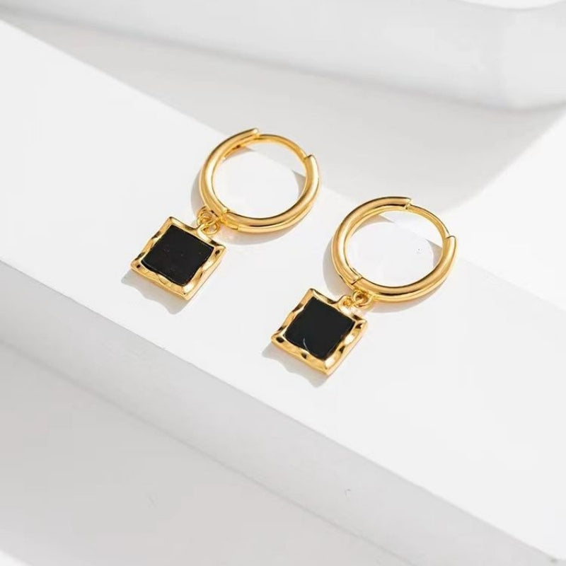 14K Gold-Plated Black Square Earrings
