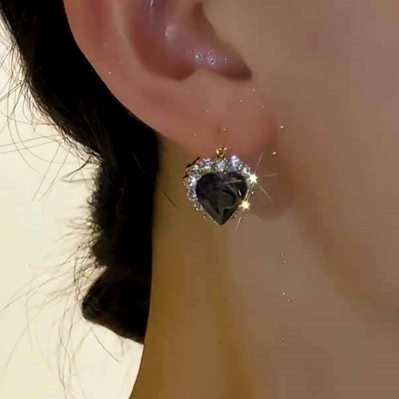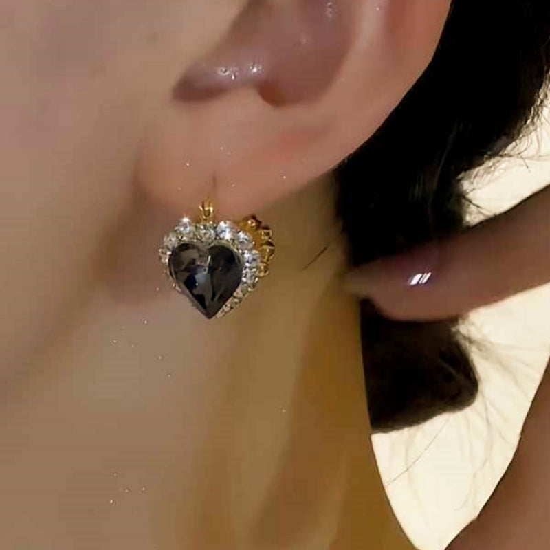 14K Gold-Plated Black Zircon Heart-Design Earrings