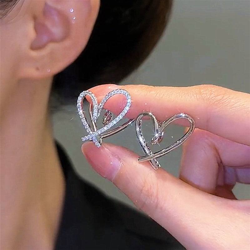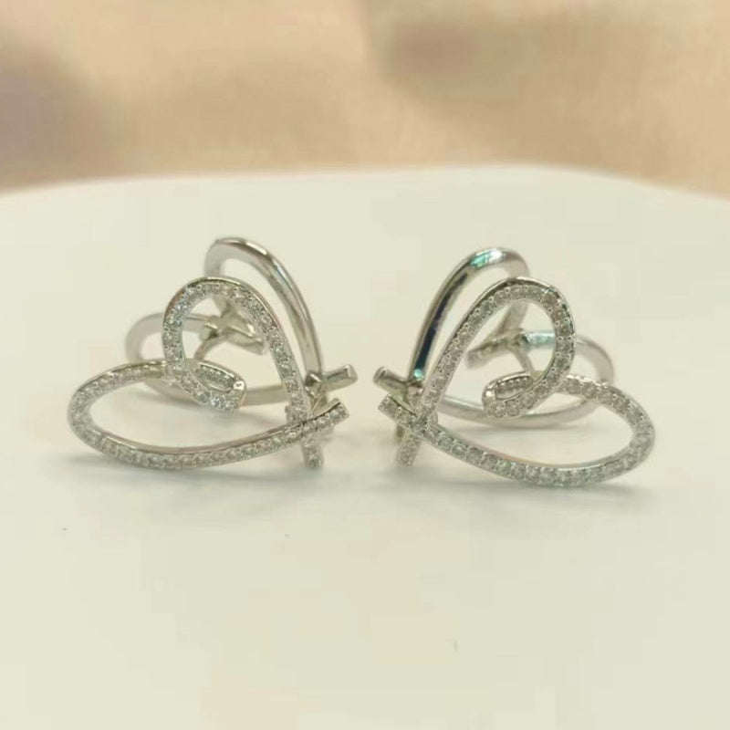 14K Gold-plated Bling Diamond Heart-Design Earrings