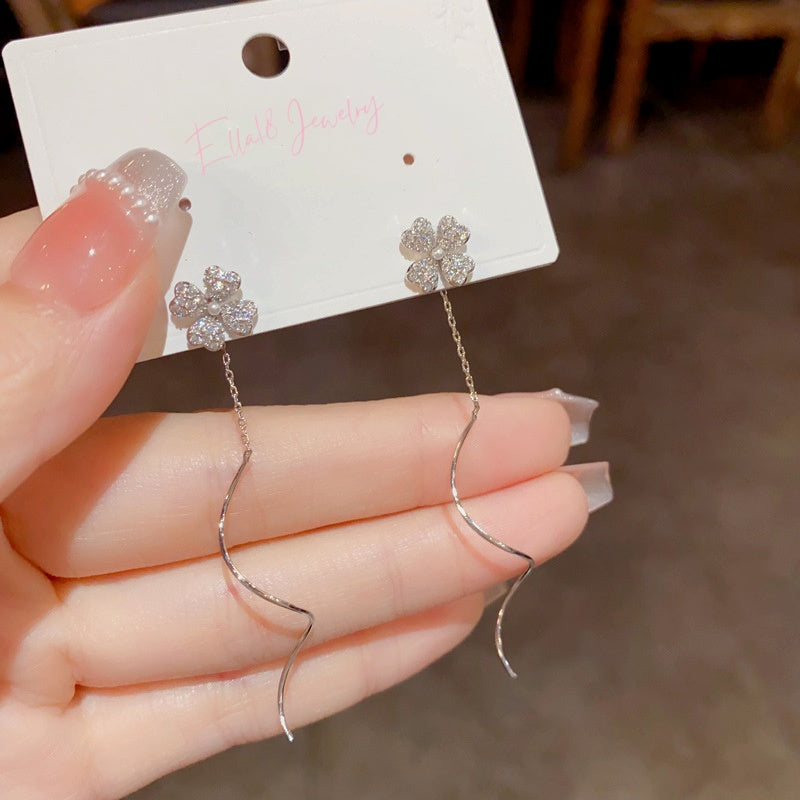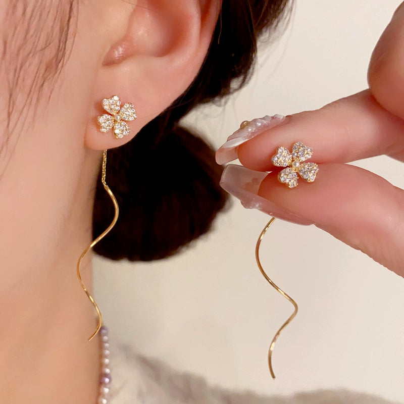 14K Gold-Plated Bling Flower Threader Earrings