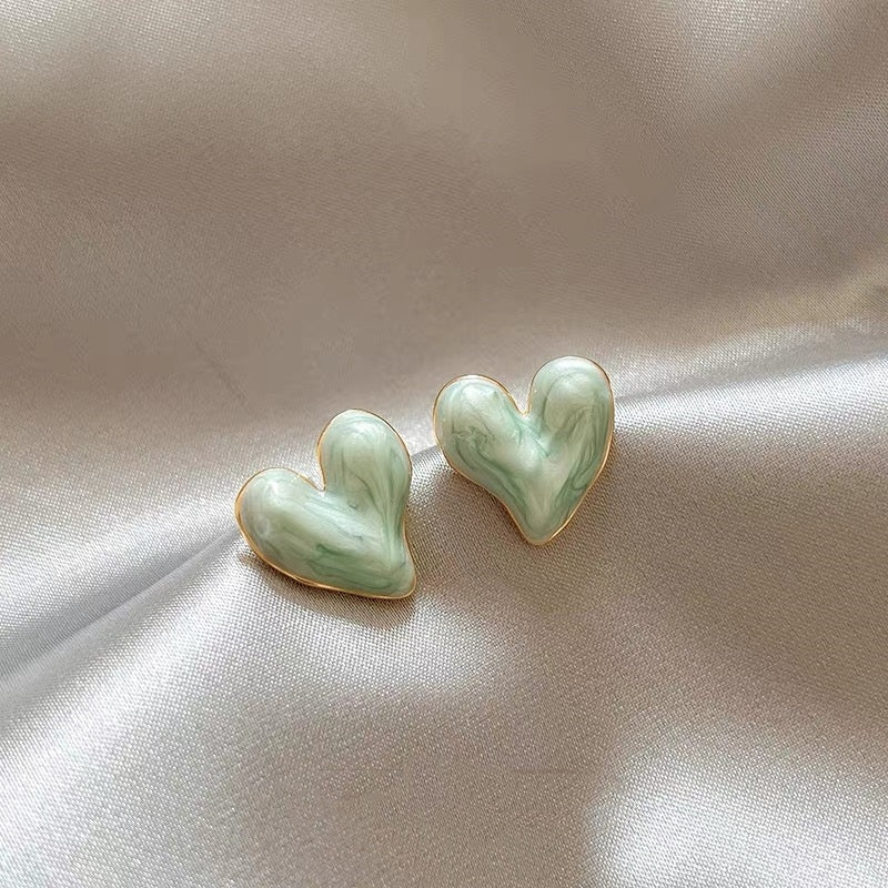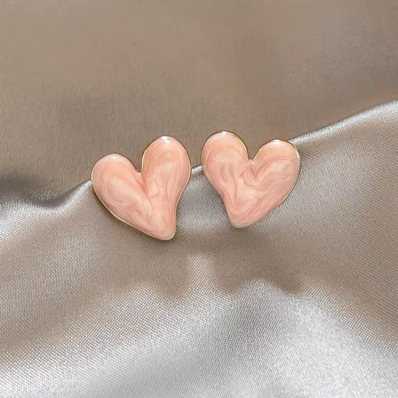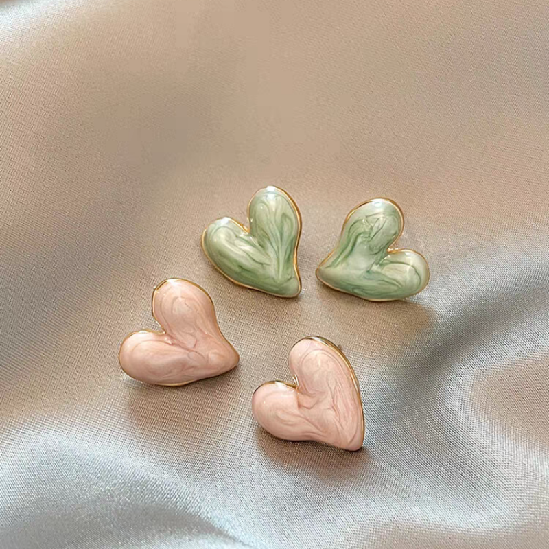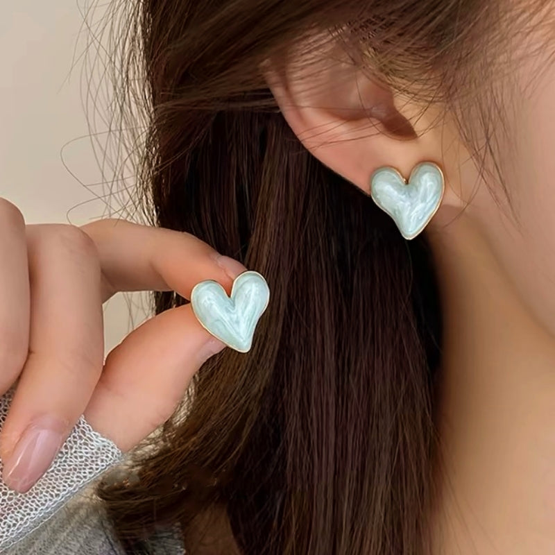14K Gold-Plated Blue And Pink Heart Glaze Stud Earrings