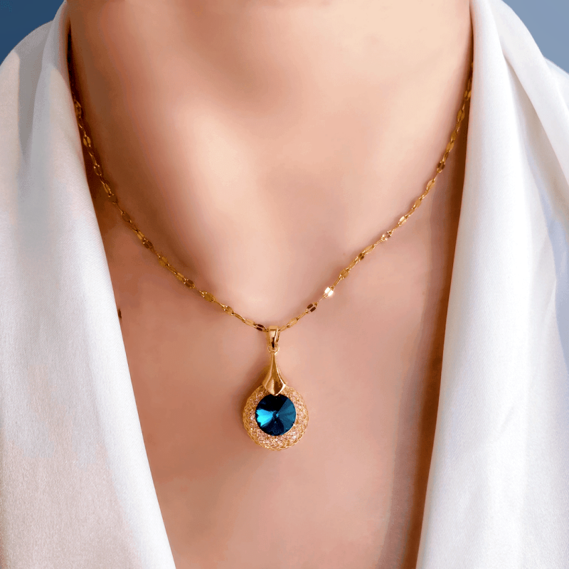 14K Gold-Plated Blue Crystal Pendant Necklaces