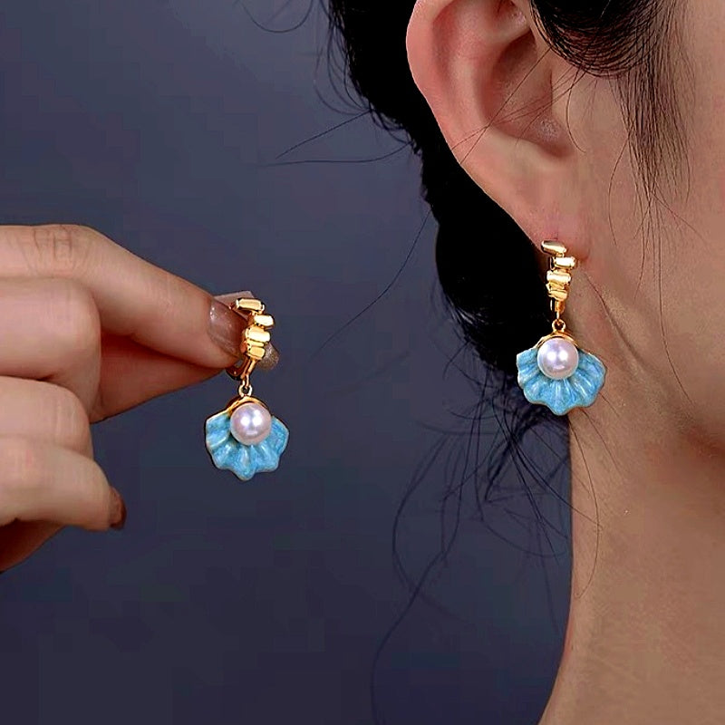 14K Gold-Plated Blue Shell Pearl Earrings