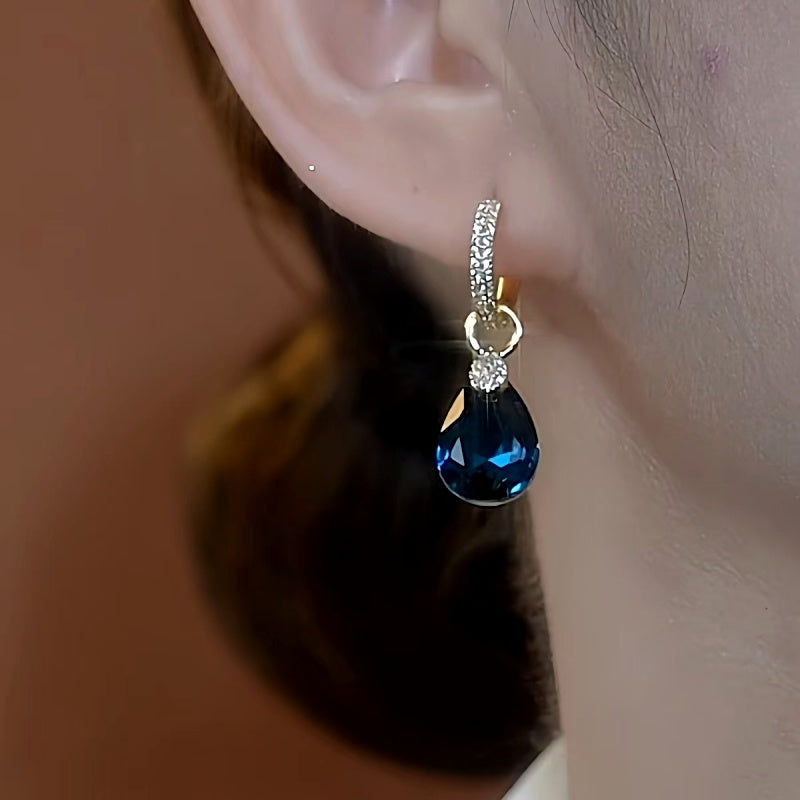 14K Gold-Plated Blue Water Drop Crystal Earrings