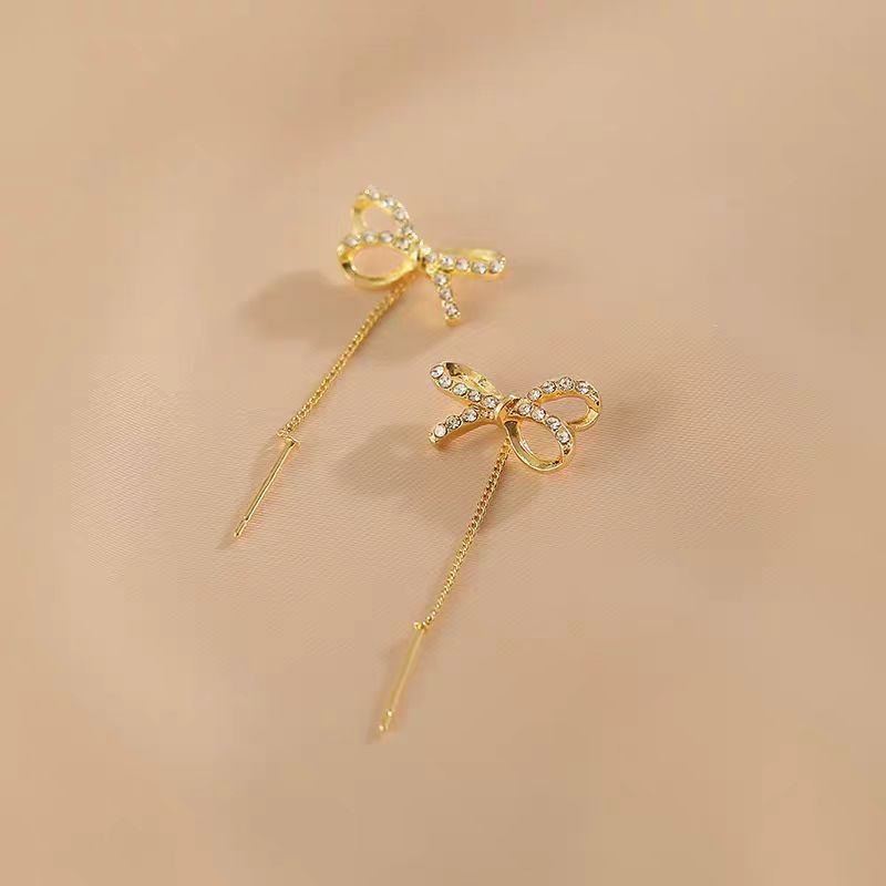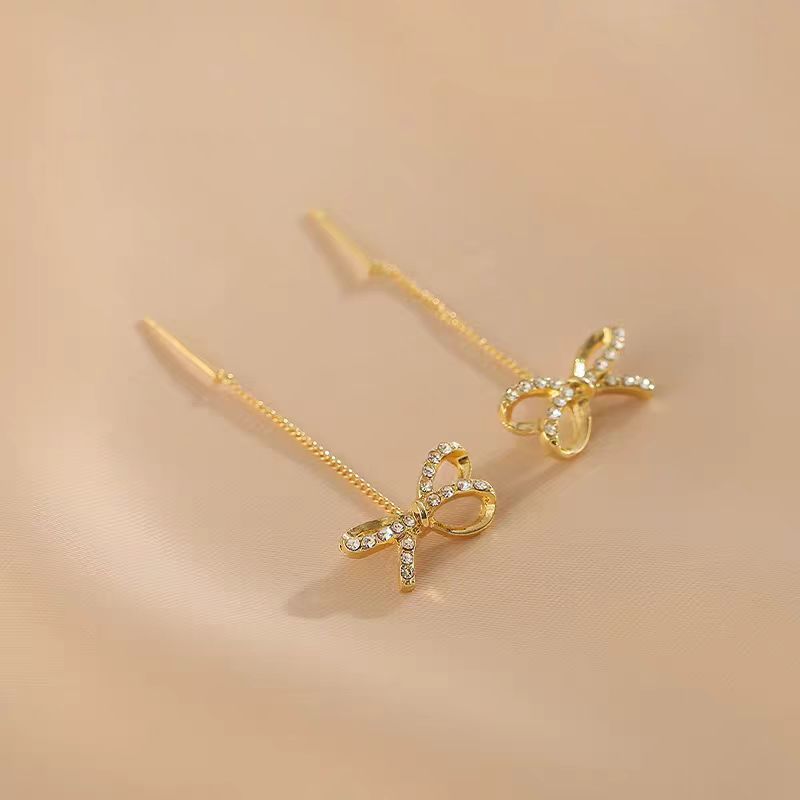 14K Gold-Plated Bow Threader Earrings