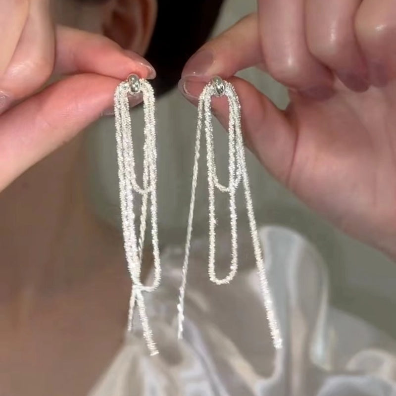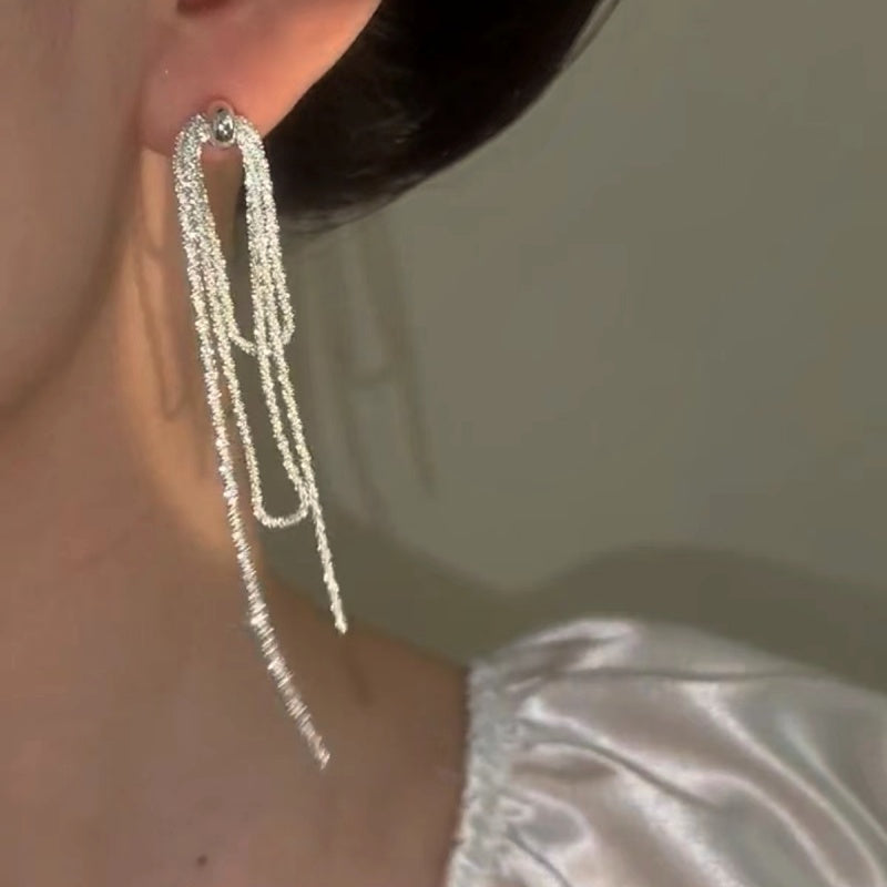 14K Gold-Plated Broken Silver Long Tassel Earrings