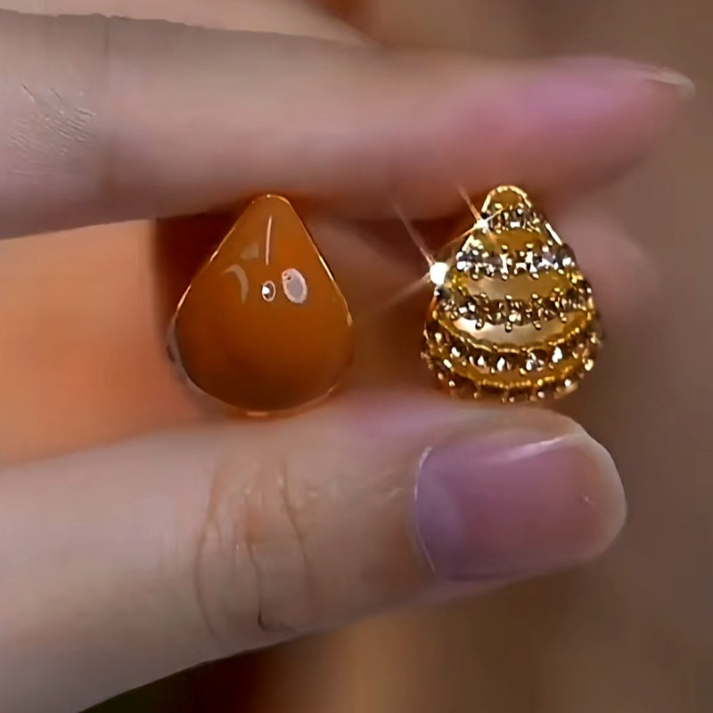 14K Gold-Plated Brown Diamond Double-Sided Basket Ear Buckle Earrings