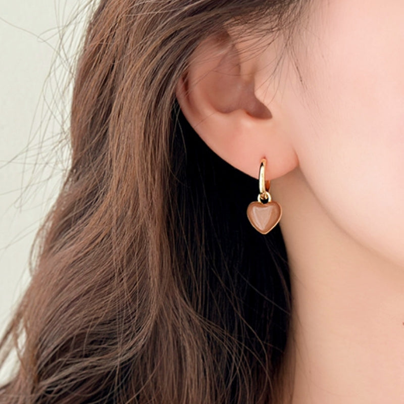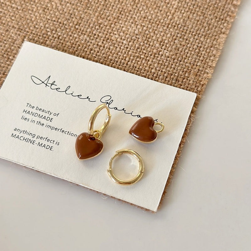 14K Gold-plated Brown Heart Earrings