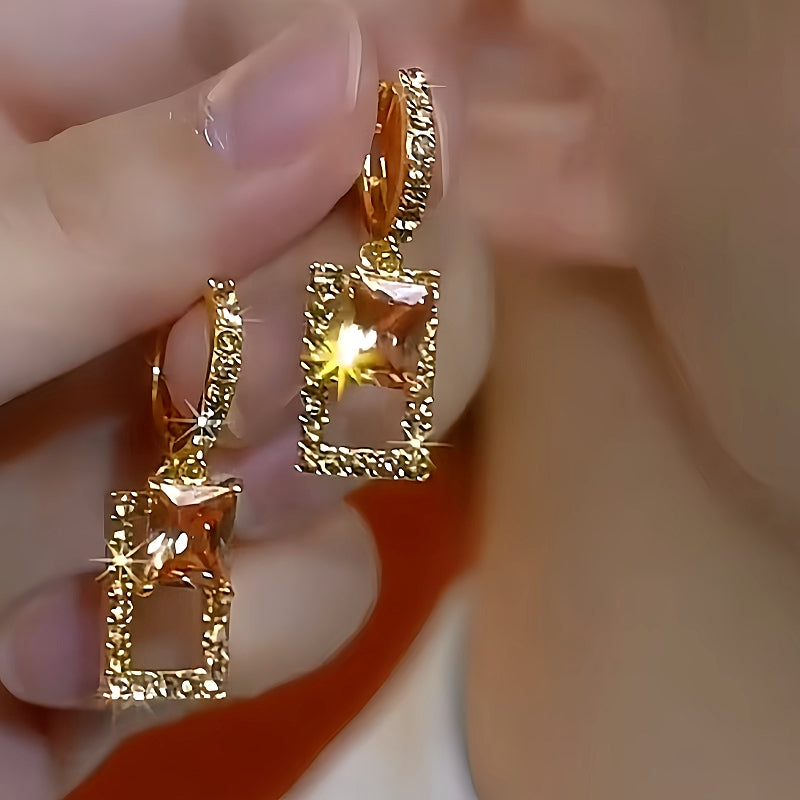 14K Gold-Plated Brown Zircon Crystal Earrings