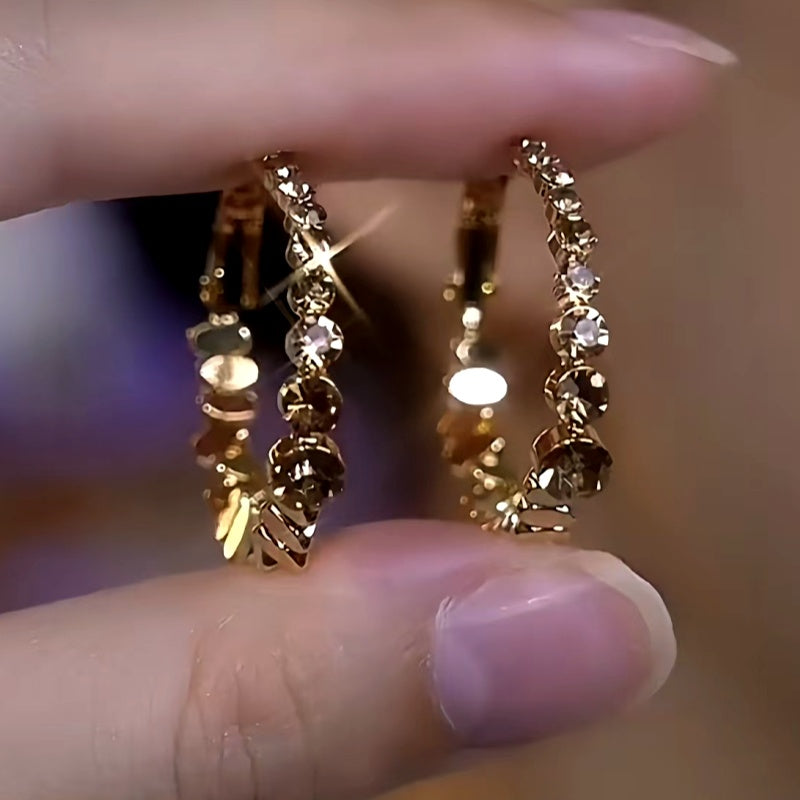 14K Gold-Plated Brown Zircon Diamond Hoop Earrings