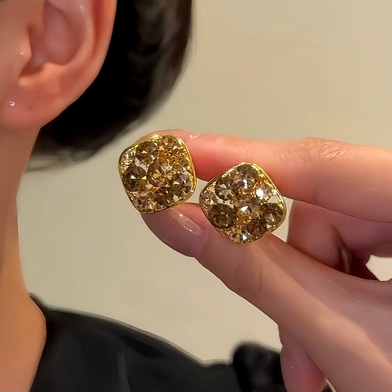 14K Gold-Plated Brown Zircon Diamond Stud Earrings