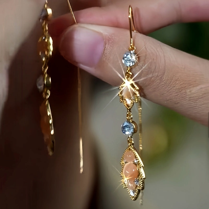 14K Gold-Plated Brown Zircon Double Jade Leaf Threader Tassel Earrings