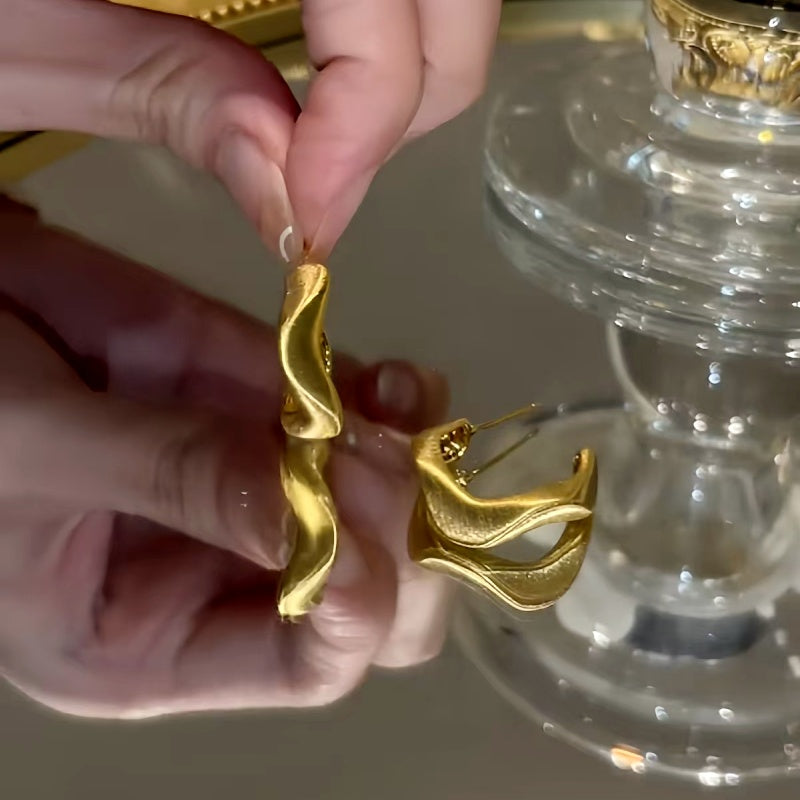 14K Gold-Plated Brushed Geometric C-Shaped Earrings
