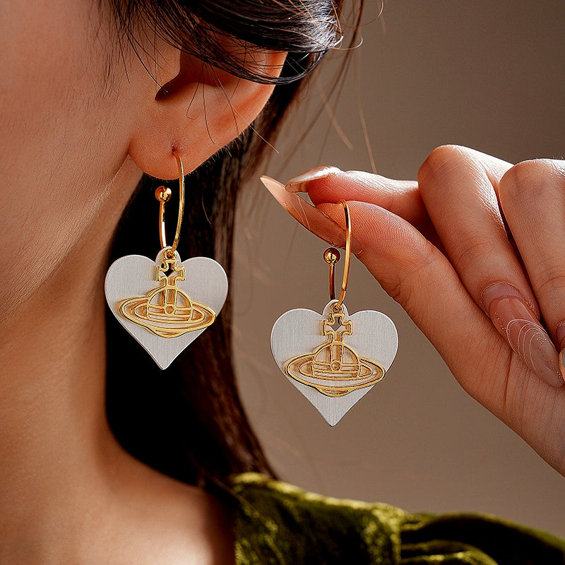 14K Gold-Plated Brushed Heart Saturn Earrings