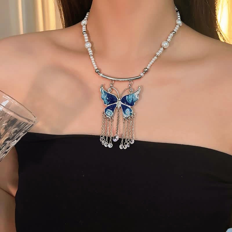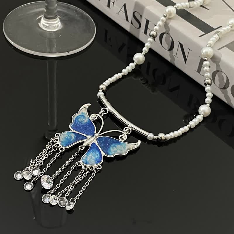 14K Gold-Plated Butterfly Tassel Bead Necklaces
