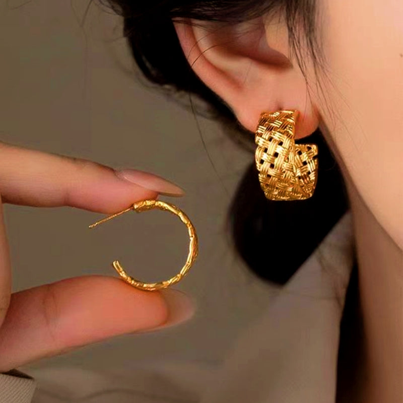 14K Gold-Plated C-Shaped Woven Pattern Earrings