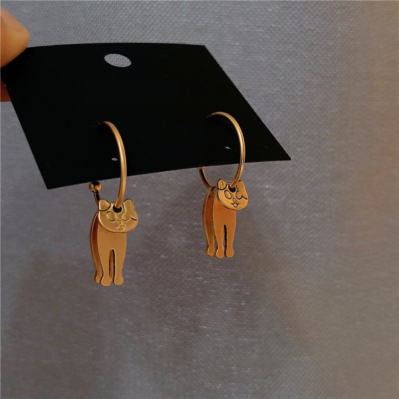 14K Gold-plated Cat Design Earrings