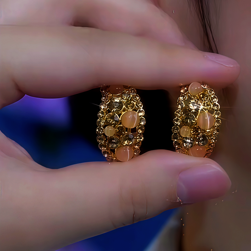 14K Gold-Plated Cat's Eye Brown Diamond Earrings