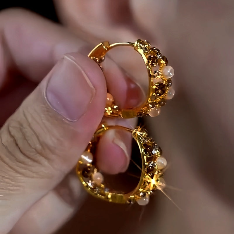 14K Gold-Plated Cat's Eye Brown Zircon Hoop Earrings
