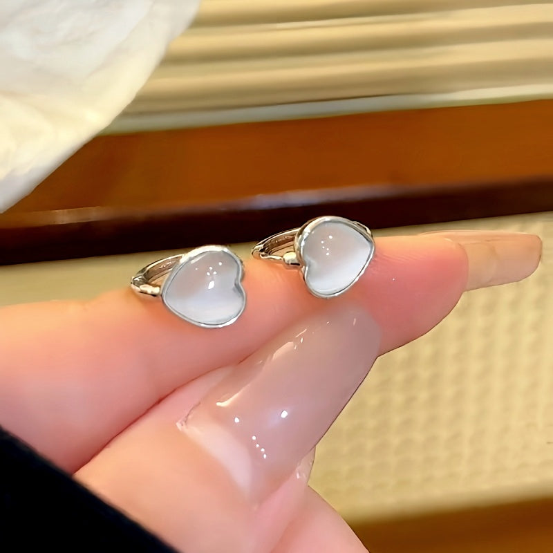 14K Gold-plated Cat's Eye Heart-Design Small Hoop Earrings