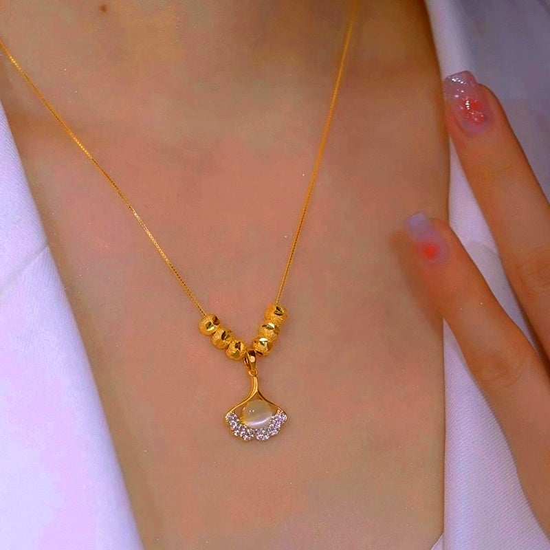 14K Gold-Plated Cat's Eye Stone Bead Leaf Earrings