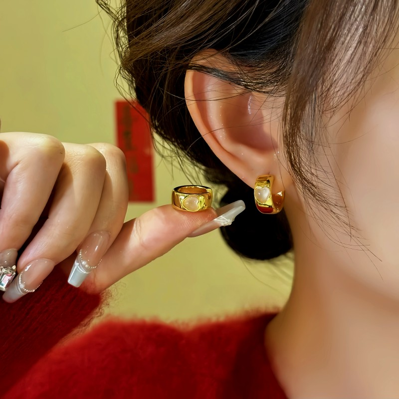 14K Gold-Plated Cat's Eye Stone Hoop Earrings