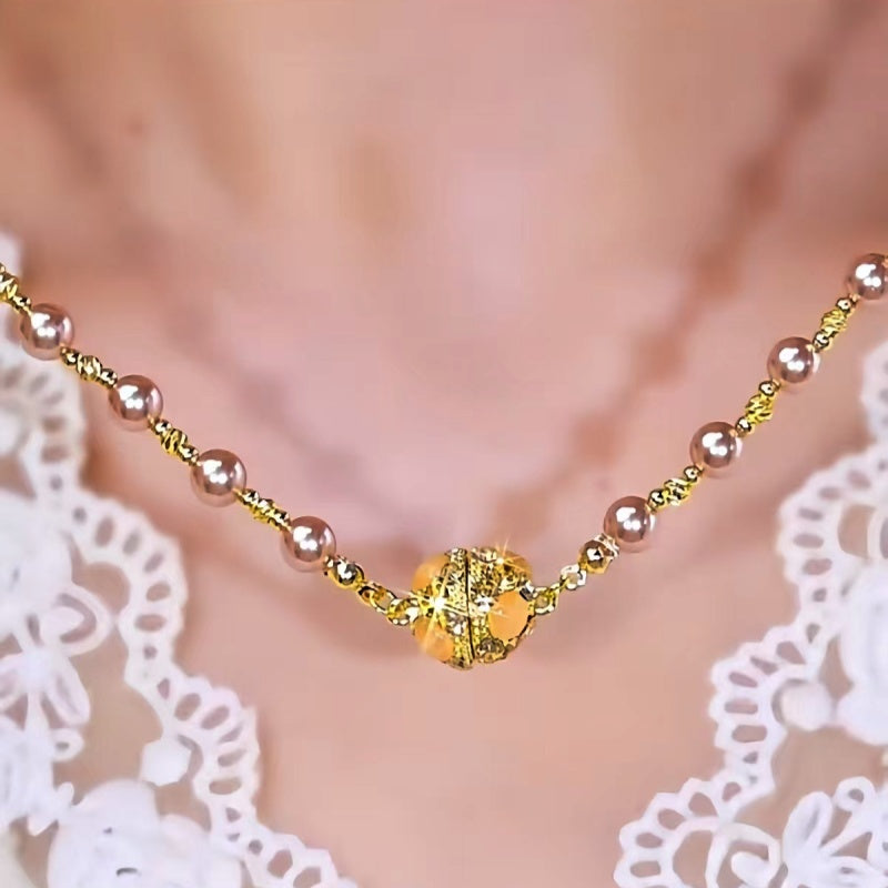 14K Gold-Plated Cat's Eye Stone Magnetic Pearl Necklace
