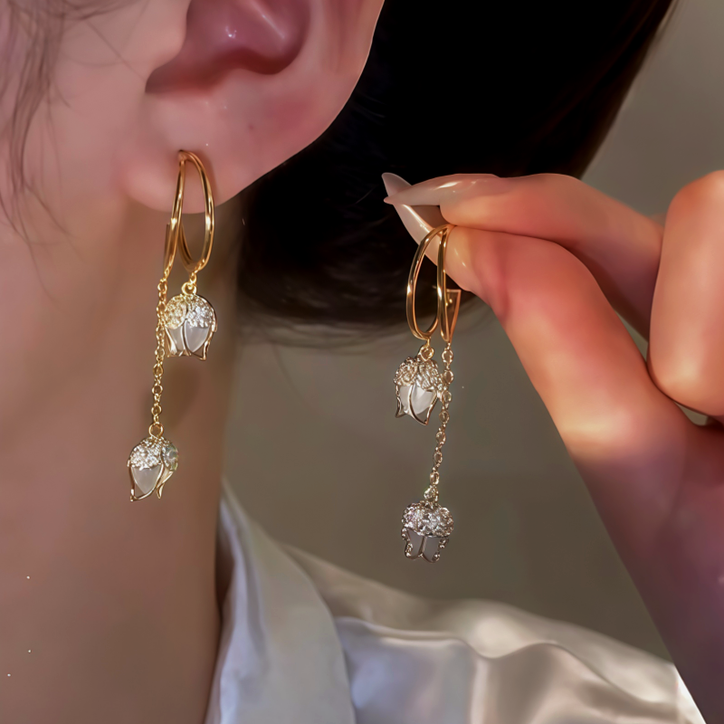 14K Gold-Plated Cat's Eye Stone Tulip Earrings