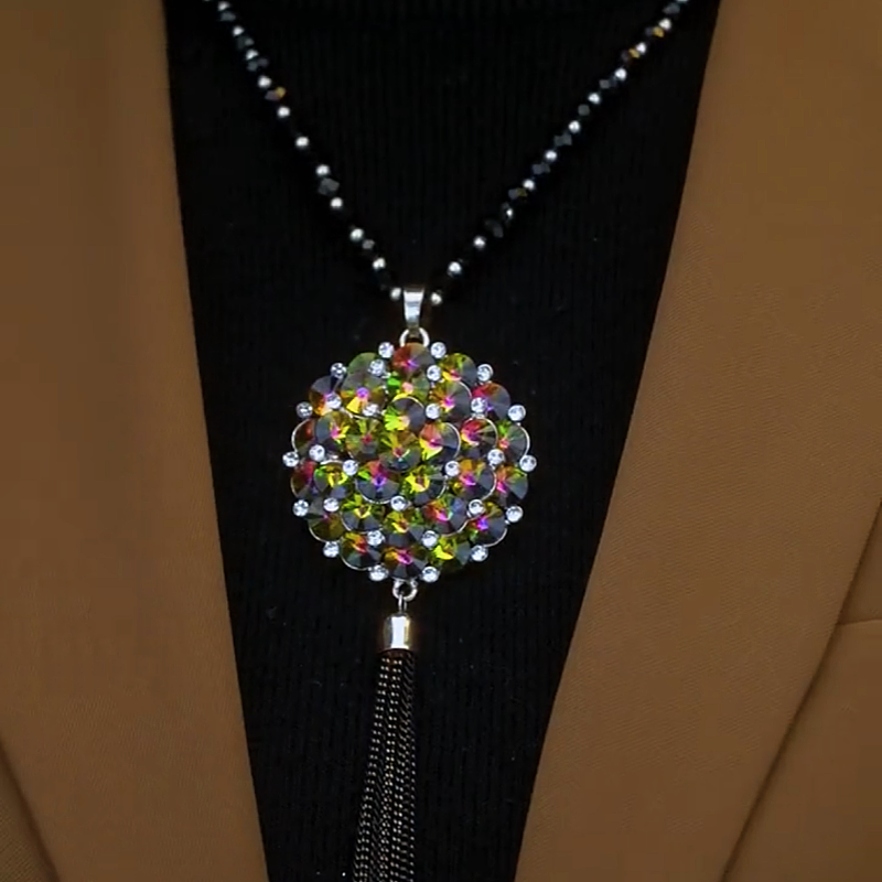 14K Gold-Plated Colorful Crystal Sweater Chain Necklace