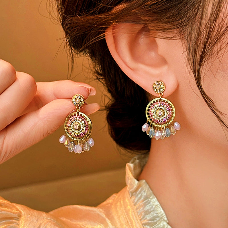 14K Gold-Plated Colorful Crystal Tassel Earrings