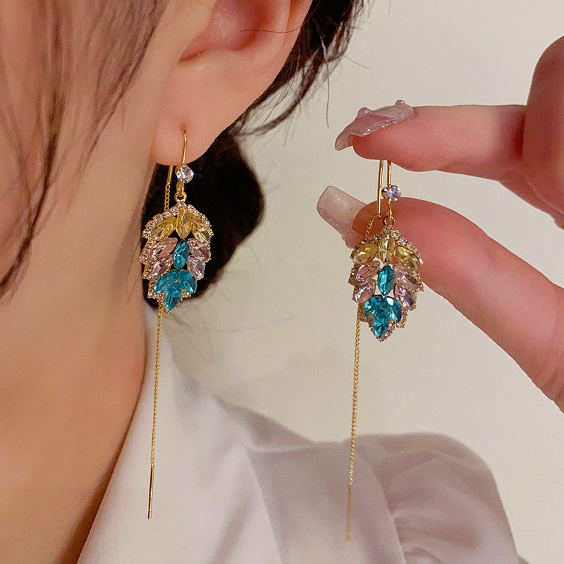 14K Gold-plated Colorful Leaf Threader Earrings