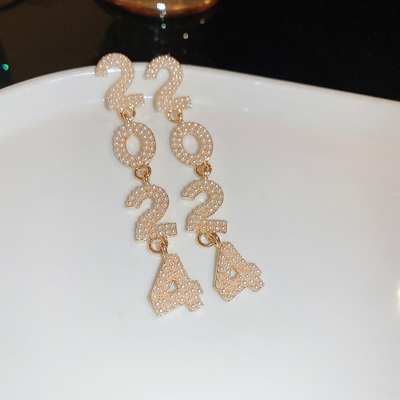 14K Gold-Plated Diamond 2024 Pearl Earrings