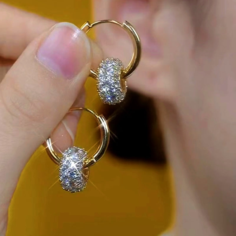 14K Gold-Plated Diamond Ball Hoop Earrings
