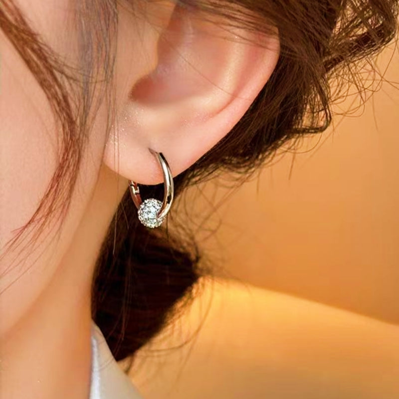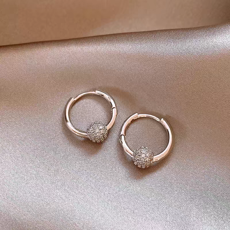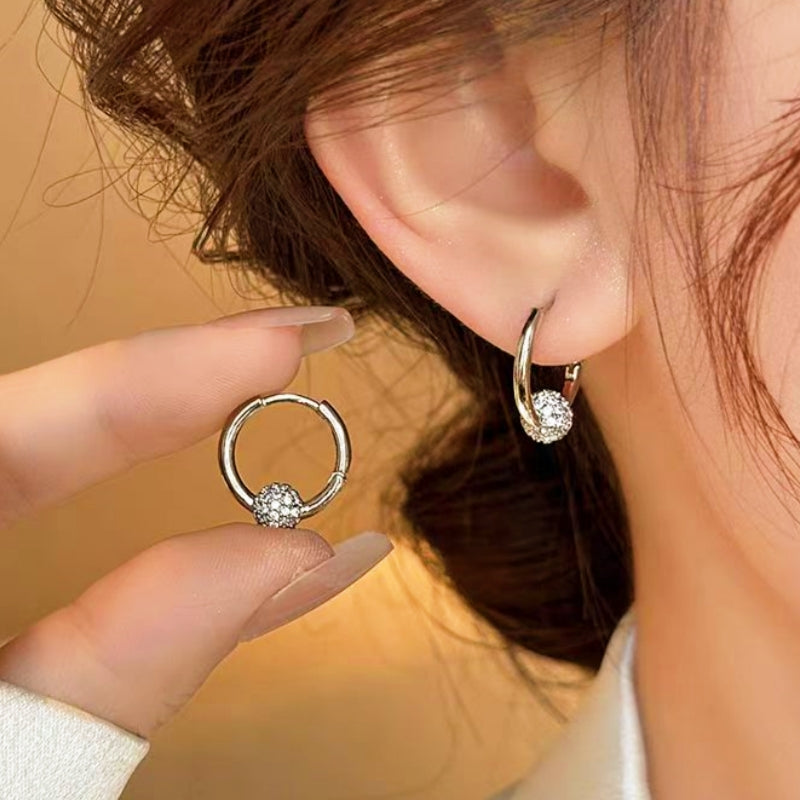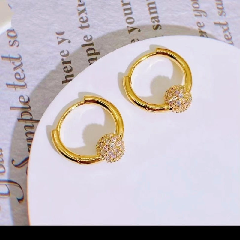 14k Gold-Plated Diamond Ball Hoop Earrings