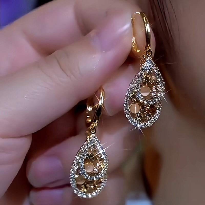 14K Gold-Plated Diamond Cat's Eye Stone Water Drop Earrings