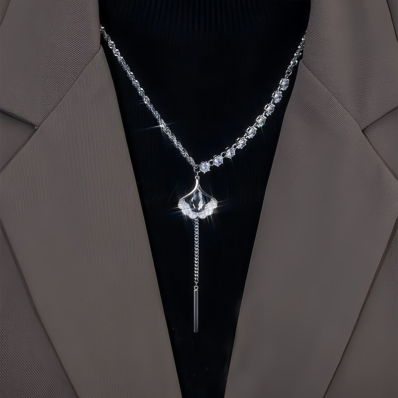 14K Gold-Plated Diamond Crystal Ginkgo Leaf Necklace