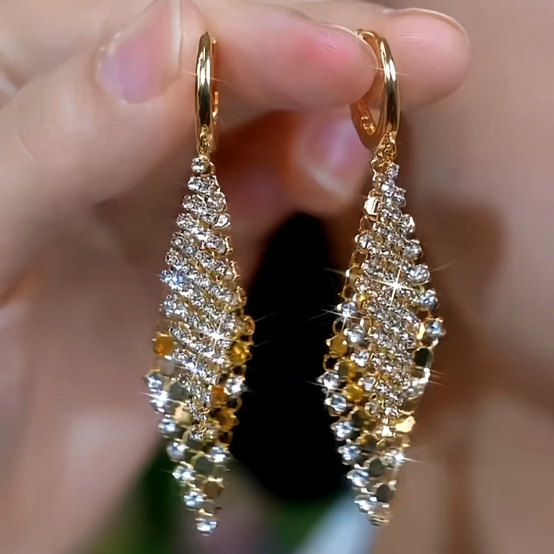 14K Gold-Plated Diamond Double-Layer Diamond Earrings