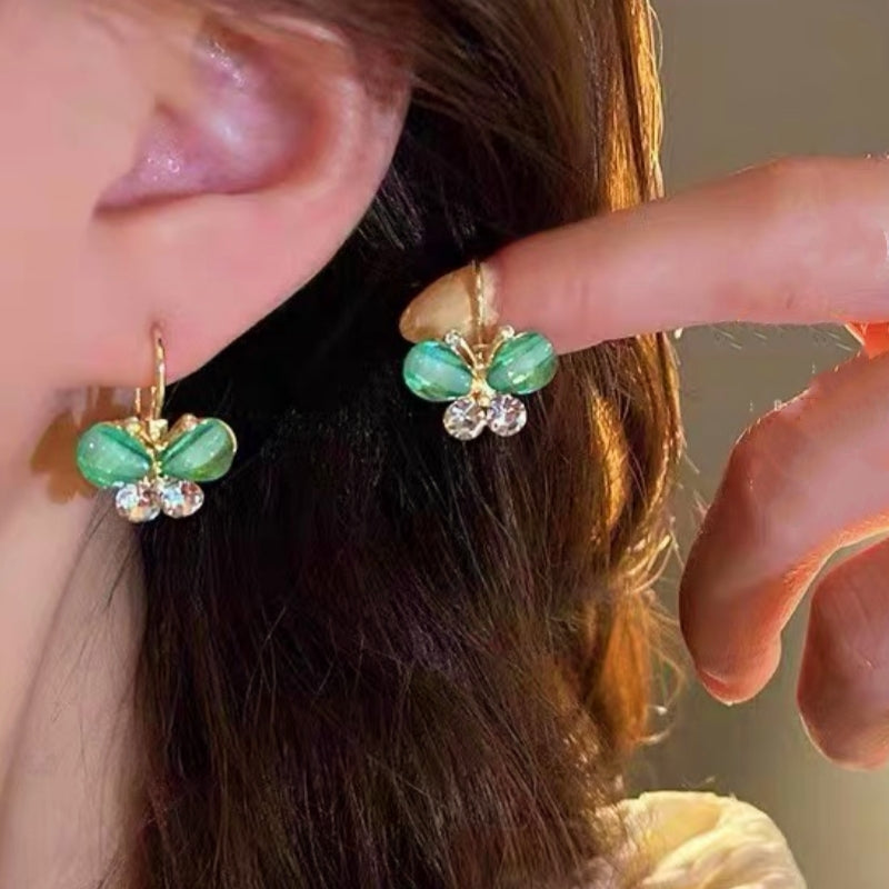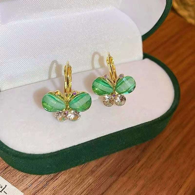14K Gold-Plated Diamond Green Butterfly Earrings