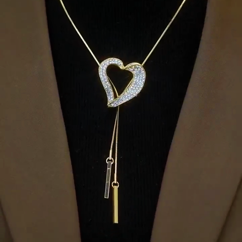 14K Gold-Plated Diamond Heart Pearl Sweater Necklace
