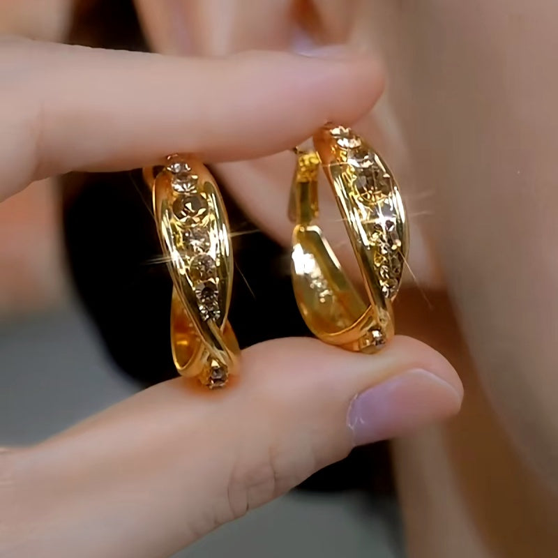 14K Gold-plated Diamond Hoop Earrings